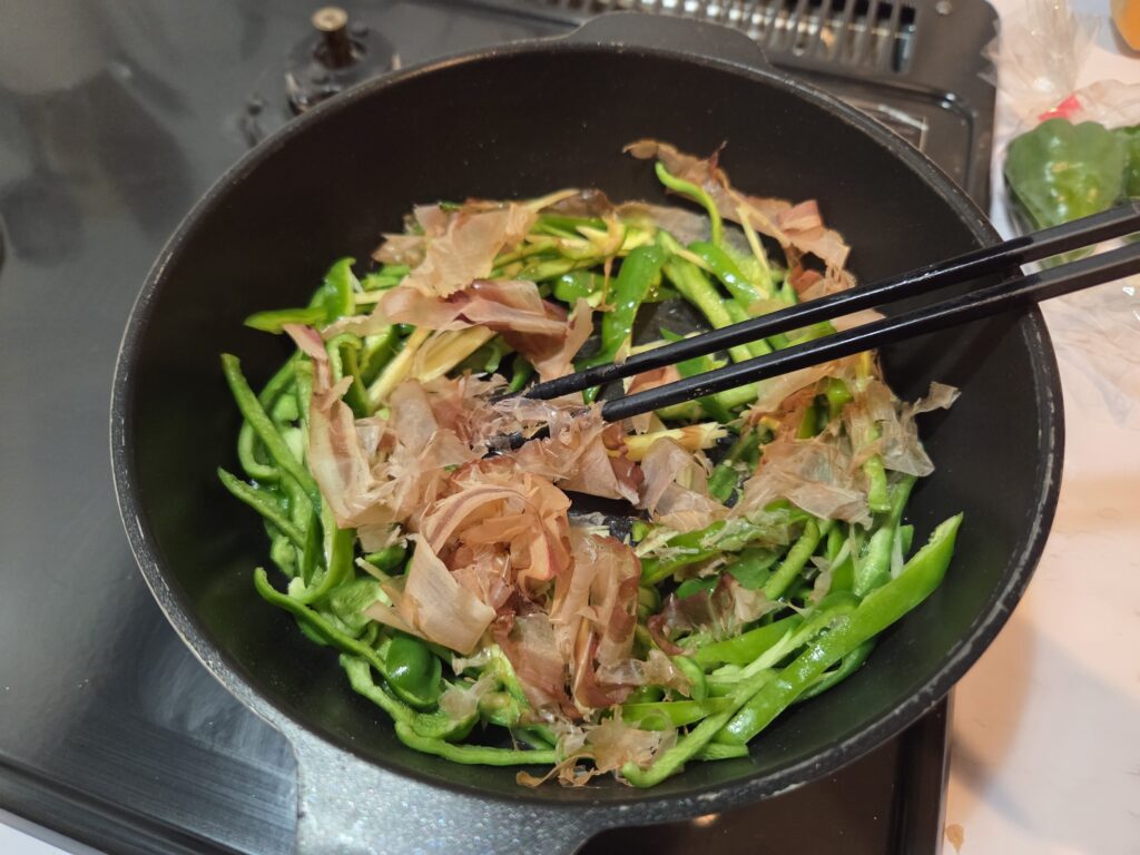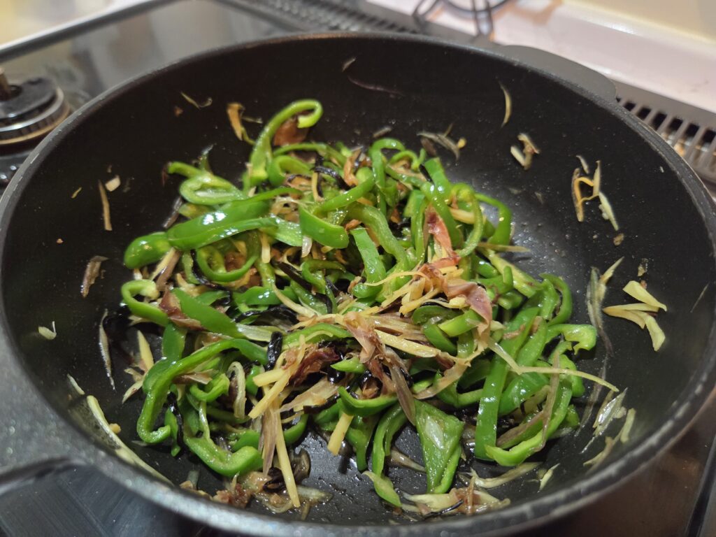 やりすぎるとピーマンの食感が失われるのでさっとで良い。(写真くらい青々としていてOK)