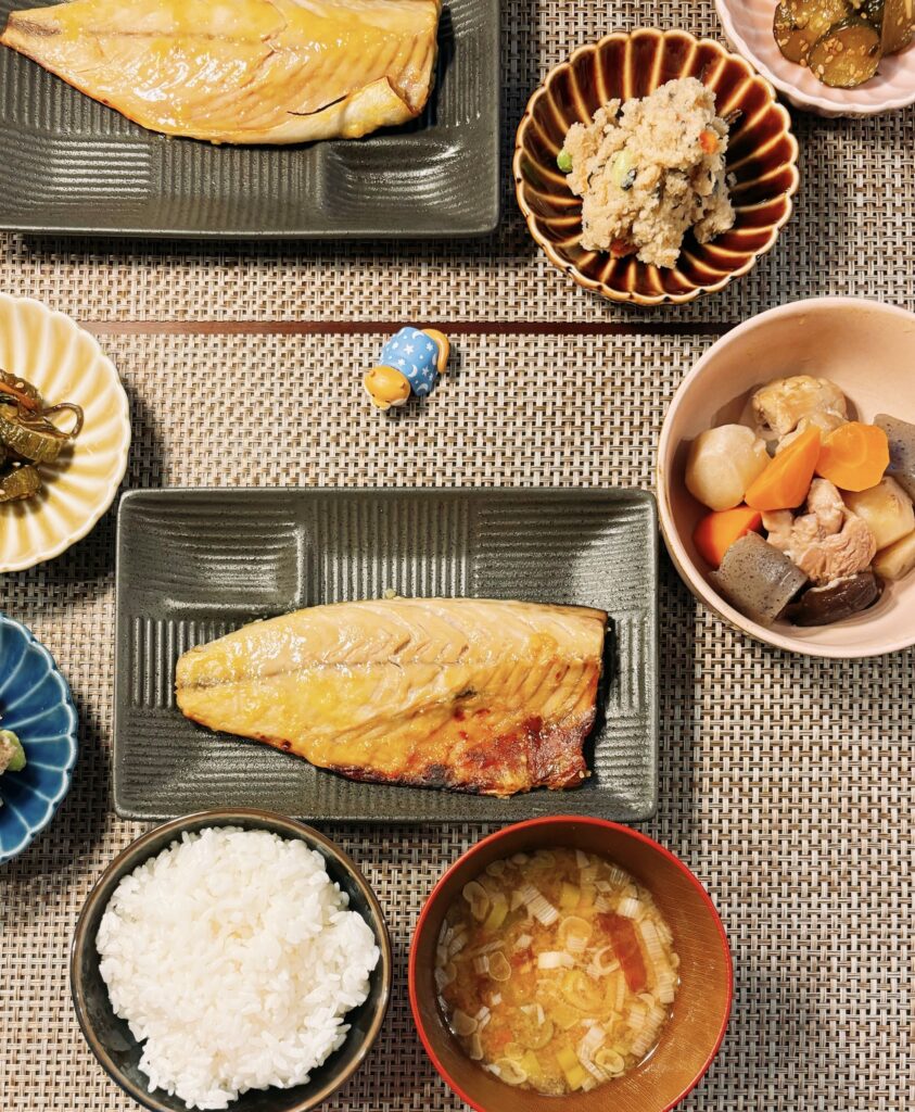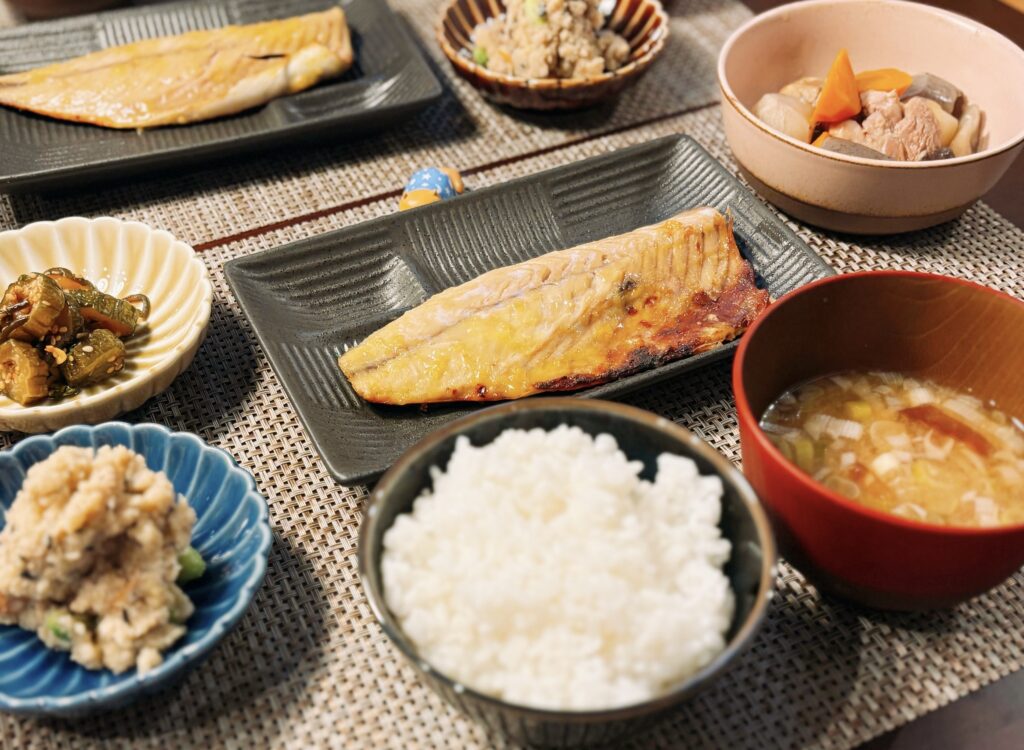 冒頭で述べた作り置き3種は土日に作っておいたやつなのでいうてもこの日は鯖を焼いただけです。