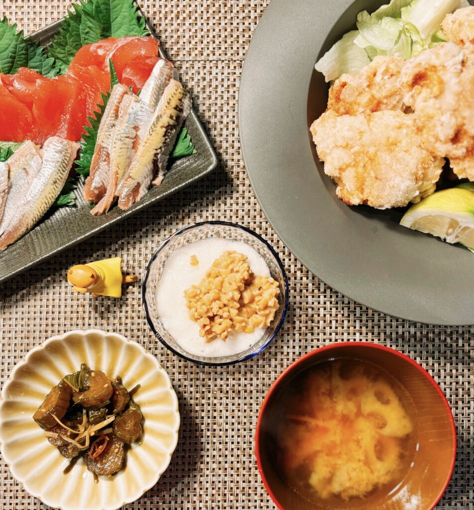きゅうりの漬物は作り置きですし、とろろ納豆は長芋を擦って納豆載せただけなので大して手間はかかってません。