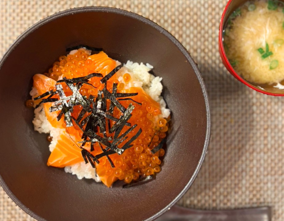 今年のふるさと納税でGETしたいくらを贅沢に使ってサーモン親子丼にしました。