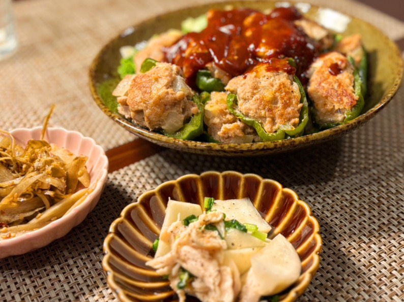 たまにピーマンの肉詰め食べたいねってことで作りました。レシピはリュウジさんのものです。
