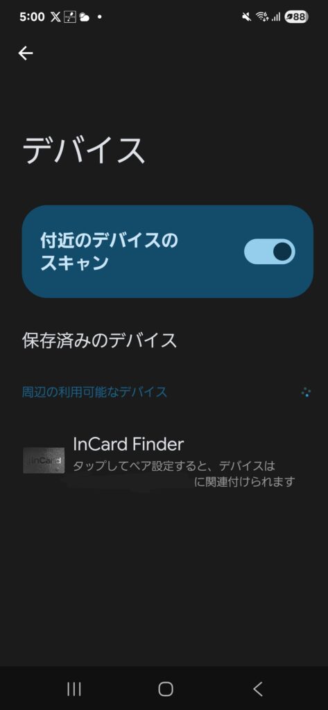接続が完了するとデバイス欄にInCardが保存されます。