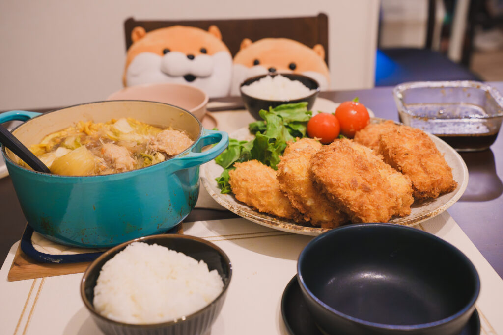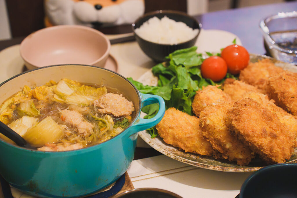 コロッケは冷凍ですが鶏団子鍋は完全手作りです。