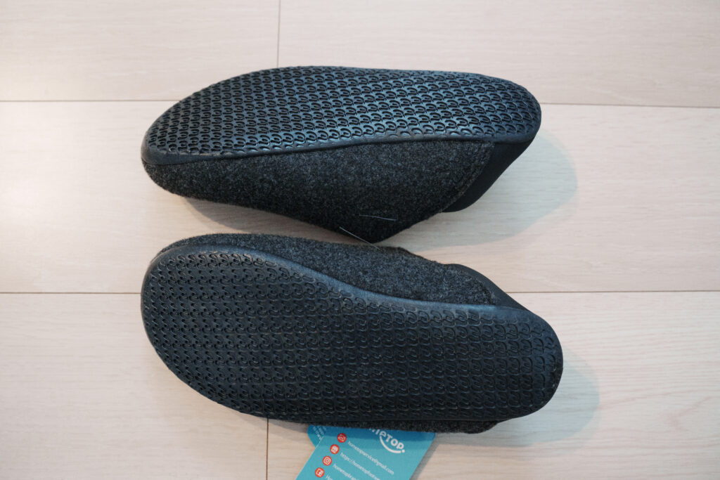 まだやってませんが洗濯も可能なそうです。しかもこのルームシューズは足裏全体がゴムでしっかりしているからか中敷きがありません。