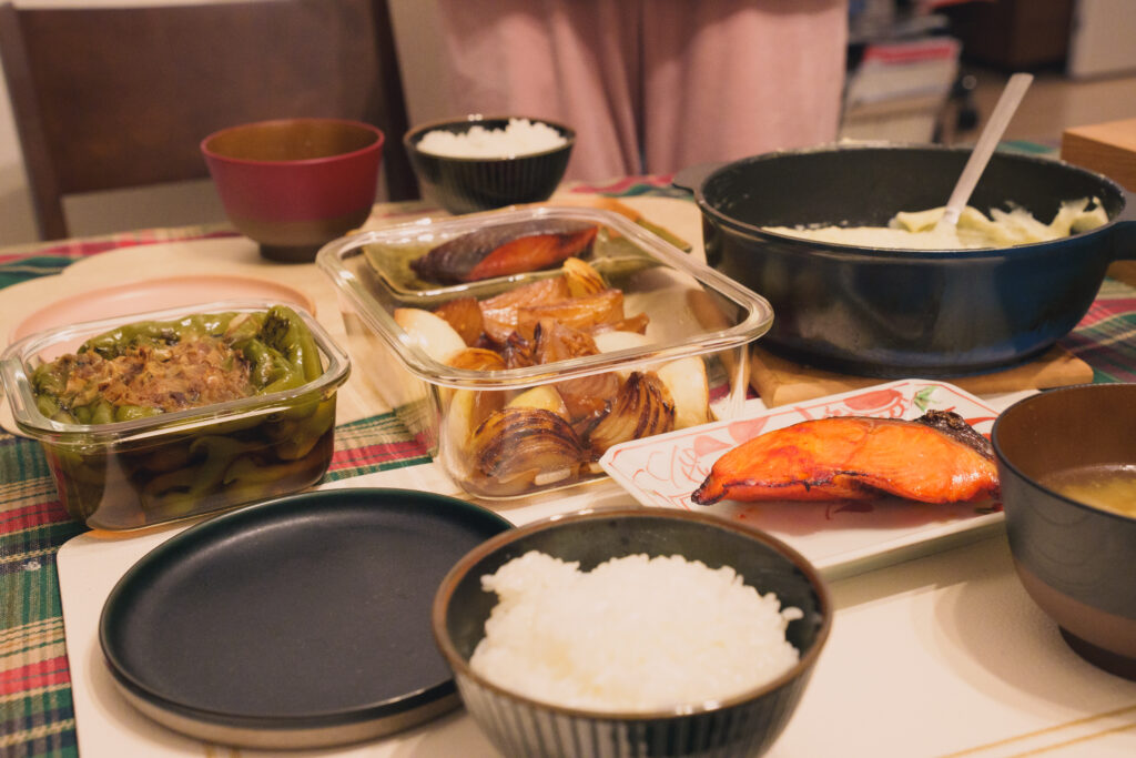 翌週分の作り置き込みで献立がすごく多いです。最近は土日にこんな感じでいろいろ作っています。このほかにも冷凍のメインおかず3日ぶんくらいと娘の離乳食も作ってます。忙しいですが料理は好きなのでなんとかなってますね。