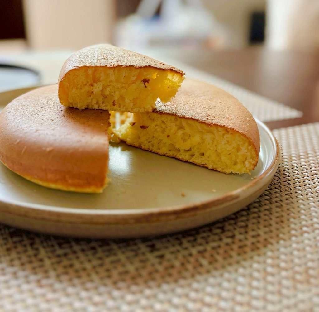 なんてことはないパンケーキなんですが、フライパンを直径が小さくて深さがあるものにして卵白をメレンゲにしたらいつもよりふっくら厚みのある感じに焼けました。でもメレンゲづくりが死ぬほどめんどくさいので毎回これをやるかと言われると微妙なところですね…