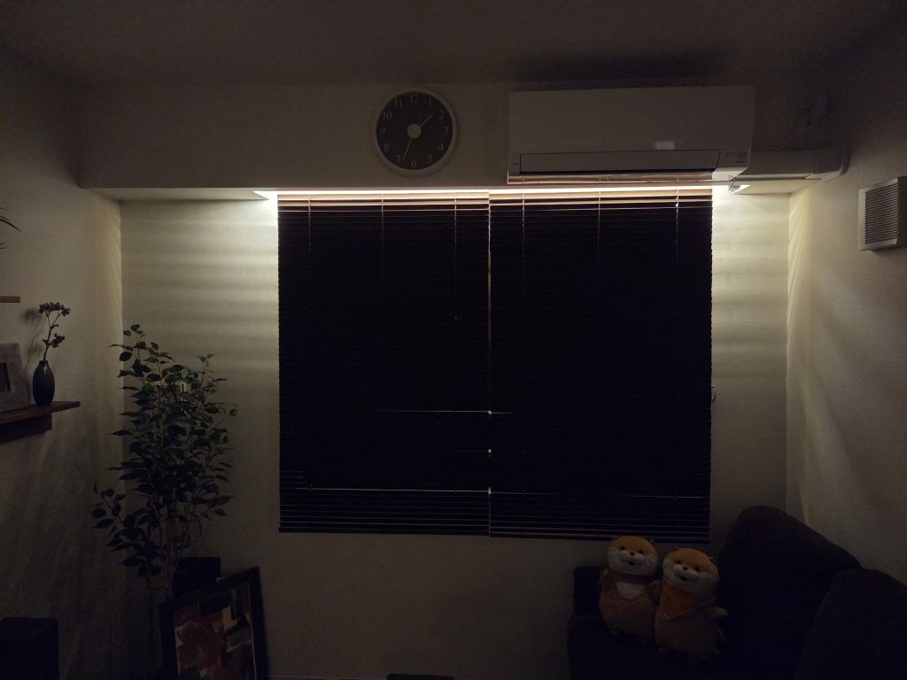 なので我が家のカーテンレールがついてる部分が部屋から見えないような窓際の構造に着目して、うまいこと貼ればテープライト自身も隠せると考え、テープライトで間接照明を作ることにしました。