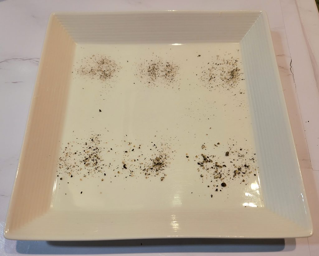 また、理由はわかりませんがプラスチック製の初代ペッパーミル君で挽いたものよりも香り高く仕上がる気がしています。使っているペッパーは変わらずGABANのホールなのでこれはミルの性能差に起因していると思っています。