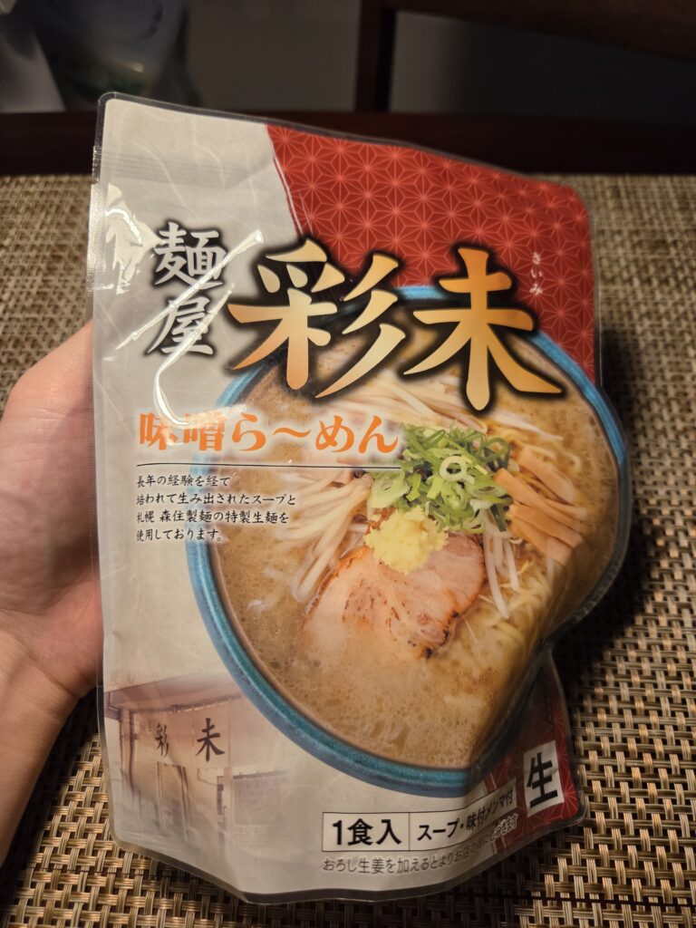 こちらの記事で紹介した僕が一番好きな札幌味噌ラーメンのお店彩未のお土産ラーメンです。
