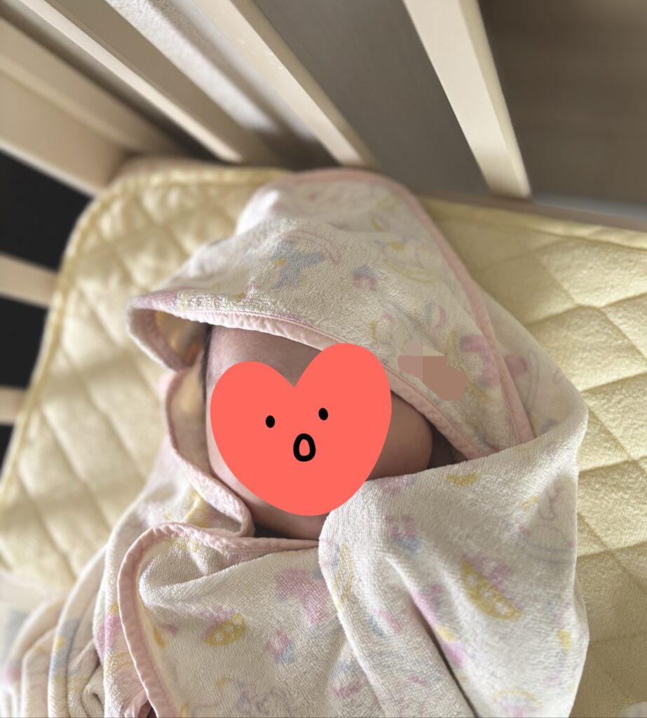 このタオルは本当にすごくて、お風呂上がりのあかちゃんの肌を拭くと一瞬で水気を吸い取ってくれます。